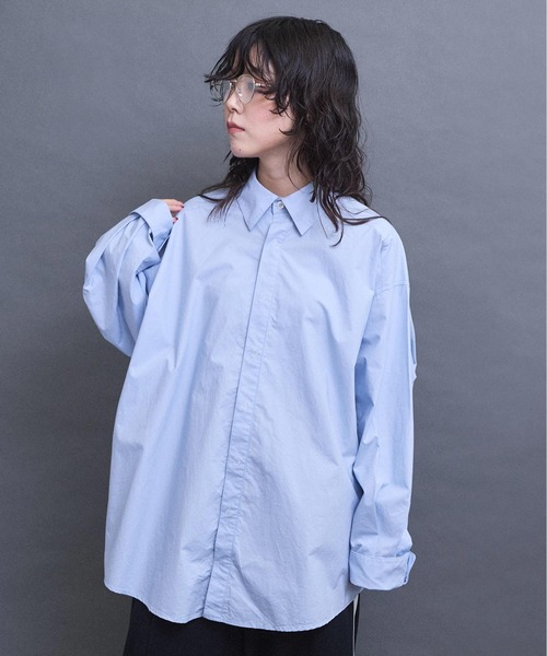 メンズライクなサイズ感のBIGシャツ。アイアムアイの数字刺繍をボタンのように配しました。サックスブルーとオフホワイト、それぞれに合わせて刺繍のカラーを選びました。第1ボタンから下はスナップボタンの仕様。1枚でバサッと着ても春の羽織りにも。カラー展開:キナリ(刺繍:グリーン)、サックス(刺繍:シロ)※着用商品はサンプルです。実際の商品と仕様、加工、サイズが若干異なる場合がございます。※光の関係で実物の商品の色味とは若干異なる場合がございます。実際に近い色味は詳細画像をご参照下さい。※取り扱いの注意については取り扱い表示をよくご確認の上、着用をお願いいたします。【素材の特性、お取り扱いの注意】・この製品を洗濯する際には多少縮む場合がありますので、形を整えてから日陰で干して下さい。・タンブラー乾燥はお避けください。塩素系漂白剤はご使用にならないでください。色が変わることがあります。・着用の際はベルトやバック周囲の壁など、表面の粗いものとの摩擦による引っかかりにもご注意下さい。・刺繍部分は引っ掛かりやすくなりますので、取扱いにはご注意下さい。IAMI IN FACT...アイアムアイインファクト無意識の意識 I AM Iが探求するのは無意識と意識のあいだにある“美しさ” 計算された整合ではなくふと生まれる間や欠け、予期せぬ裂け目 それは理性を超えて立ち上がるアートであり「私は私」という存在の宣言、I AM Iの根源にある思想です