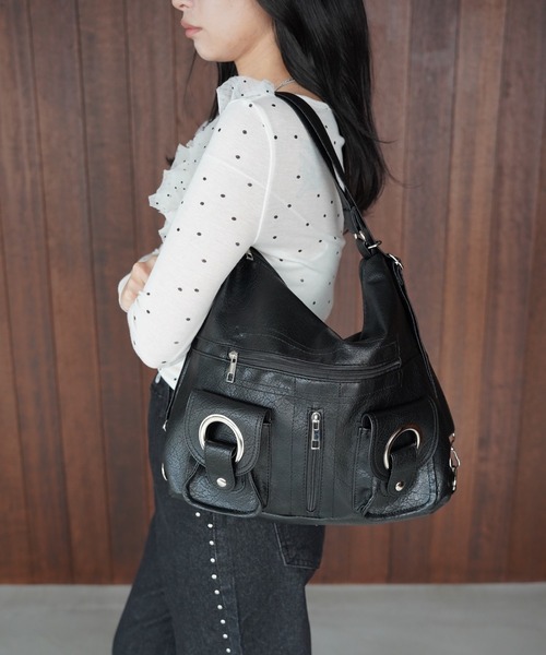複数のポケットを備えたショルダーバッグ。立体感のあるフォルムに、金具ディテールを組み合わせることで、スタイリングのアクセントとして取り入れやすい仕上がりです。程よいサイズ感ながら、A4サイズが収納可能で、デイリー使いに嬉しい実用性を備えています。開閉はファスナー仕様を2か所に設け、中身をしっかりと収納できる構造。外側にはチャック付きポケットを2か所、フラップ付きポケットを2か所配置し、使用頻度の高い小物の整理がしやすくなっています。内側にもポケットを備え、バッグの中をすっきりと保てる点がポイントです。持ち手は調節可能で、ショルダーは着脱・調節ともに対応。肩掛けや斜め掛けなど、スタイリングやシーンに合わせた使い分けができます。カジュアルからきれいめまで幅広いコーディネートに馴染み、外出や通勤、旅行などさまざまな場面で活躍するバッグです。詳細補足開閉:ファスナー ×2A4収納:可能持ち手調節:可能ショルダー:着脱可能、調節可能外ポケット:チャック×2 フラップ×2【SANSëLF】▼お気に入り登録をおすすめします▼♡をクリック!お得なセール情報や、人気完売商品の再入荷情報ラスト1点の通知など、耳寄りなお買い得情報をいち早く受ける事ができます。ブランド【SANSëLF】のお気に入り登録もご一緒にお願い致します。取扱注意事項※サイズは、測定方法と測定者によって多少の誤差がありますのでご了承下さい。(平置き採寸)※生地の素材上、においが気になる場合がございます。 その際は風通しの良い所で陰干しして頂くと、ほとんど感じにくくなります。※湿気が少なく、日光等が直接当たらない通気のよい場所に保管してください。※水に濡れてしまった場合は、柔らかいきれいな布で素早く水気を取り、陰干ししてください。※ご購入の際は色・サイズを必ずお確かめの上、ご購入下さいませ。※お使いのモニターや端末により、質感・色合いが実際の商品と異なって見える場合がございます。※着用画像は撮影状況や光によって、多少異なる場合がございますので置き画像をご確認下さい。※デニムを使用した製品は、インディゴ染めをしています。汗や摩擦により移染しやすいので、白色、淡色の組み合わせや重ね着はお避け下さい。※レザー製品(合皮も含む)は、素材の特性上徐々に劣化し固くなったり表面がひび割れてくることがありますのでご了承ください。また、熱に弱いためアイロンやドライヤーはかけないでください。※無理な詰込みや、鋭利なものの詰込み、極端に重たいものは入れないでください。※中に入れたものが落ちることがありますので振り回さないでください。※金属を使用している商品に関して、金属アレルギーや肌に異常を感じた方は、商品のご使用をおやめいただき、専門医にご相談下さい。