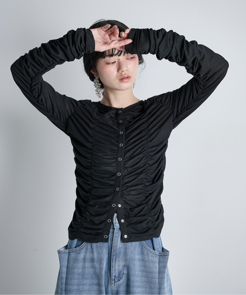 THE YOn 2026 SS Collection 着映えするシャーリングトップス 【Design】 女性らしい華やかな表情が印象的な一着。 身頃から袖口まで大胆にデザインしたシャーリングがポイント。 やや透けのある生地を合わせ、柔らかな奥行きを演出。 程良くフィット感のあるサイジングで、華やかながら華奢見えする仕上がりに。 【Styling Point】 ボトムス合わせはカジュアルダウンしても、きれいめにまとめても◎ スタイルに合わせて前後2wayで着回しが可能です。 --------------------------- 裏地:なし 光沢感:なし 透け感:ややあり 伸縮性:あり --------------------------- 【お買い物をお楽しみいただく為に】 ▼お気に入り登録をオススメ致します。 『♡』をクリックして下さい。 ・《商品のお気に入り登録》で再入荷通知や、ラスト1点の通知、セールの際の通知も受け取ることができます。 ・《ブランドのお気に入り登録》で新作商品や再入荷など、お得な情報を受け取ることができます。 【ATTENTION】 ※画像の商品はサンプルです。 実際の商品と色味、仕様、加工、サイズ、素材等が若干異なる場合がございます。 ※撮影場所やお使いのモニター環境により若干お色味が異なる場合がございます。 ※製品によっては染料の特性上、湿った状態や汗をかいた状態での長時間の放置、または摩擦により、他のものへ色移りする恐れがありますので、着用時にはご注意下さい。 ※風通しがよく、湿気の少ない日の当たらない場所で保管して下さい。 ※また製品加工上、お手元に届く際に匂いが生じる場合がありますが、 ご使用を続けていく事により匂いは軽減されます。