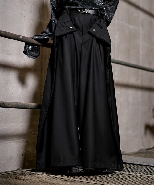 ------------------------------- 【セットアップ対応アイテム】 ブランド品番:er250870 商品名:【ERAR】【セットアップ対応】ファイヤーマンストラップダメージデザインショート丈テーラードジャケット ※こちらをコピーの上、検索してください。 ------------------------------- ■アイテム説明 高いデザイン性で抜群の存在感を醸す、タックワイドパンツ。 大胆に大きく取ったウエストの端を折り返し、スナップボタンでフロントに留めた個性的なデザインが魅力。 ウエストのトップに切りっぱなし加工を採用し、ラフな印象をプラスしました。 タックも入った立体的な作りに加え、ワイドなシルエットで動きに合わせて自然なドレープ感を楽しめます。 深めの股上なので、タックインスタイルもおすすめ。 カラーはどんなコーディネートにも相性抜群のブラックをご用意。 ユニセックスで着用できるので、男女問わず手軽に旬のコーディネートが楽しめるアイテムです。 ■素材 さらりとしたポリエステルとレーヨンの混紡素材で、滑らかなドレープを生み出す生地。 ほのかな光沢感が上品な印象をプラスしてくれます。 ■コーディネート トップスやジャケットもブラックでまとめると、簡単にお洒落なモードコーデが完成。 厚底スニーカーを合わせれば、パンツのワイドシルエットがさらに際立ちます。 同素材のテーラードジャケット(品番:er250870)を合わせたセットアップコーディネートもおすすめです。 ▼商品詳細 透け感:なし 裏地:なし 光沢:ややあり 伸縮性:なし ▼推奨サイズ S:~ 169cm M:170cm ~ 174cm L:175cm ~ 179cm XL:180cm ~ -モデル着用サイズ- 172cm / SIZE:L 靴底の高さ /7cm ※商品画像は、光の当たり具合やパソコンなどの閲覧環境により、実際の色味と異なって見える場合がございます。予めご了承ください。 ※この製品はデザインとしてダメージの箇所があります。着用、洗濯で多少のほつれが生じる可能性がありますのでご注意ください。ほつれが気になる際は無理に引っ張らず、はさみで取り除くようにしてください。洗濯の際は他のものとの引っかかりにご注意ください。 ■ブランド説明 『その時代に囚われず自我を貫く。』をコンセプトに他に無い癖のあるアイテムを展開 【お買い物をお楽しみいただく為に】 ▼商品のお気に入り登録 完売カラーの再入荷通知や、ラスト一点の通知、セールの通知も受けることができます。 ▼ブランドのお気に入り登録 新商品や再入荷等、いち早くブランドのお得な情報を受け取ることができます。