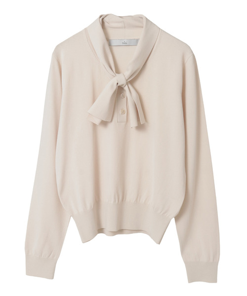 フロントにあしらったボウタイが印象的なデザインニット。 まるでリボンのようなディテールが、上品さとフェミニンさを演出してくれます。 1枚で着るのはもちろん、ジャケットのインナーとしても華やかに映えるので、 オン・オフ問わず幅広く活躍。 きちんと感がありながらも快適な着心地で、 シンプルな中にも存在感のあるトップスです。 きゅっと目が詰まった表面感がきれいな素材。 透けにくく1枚でも安心して着ていただけます。 ■透け感 なし ■伸縮性 あり ■光沢感 なし ■裏地 なし ■生地の厚さ 普通