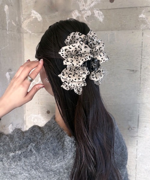 ■デザイン■落ちついたレオパード柄が魅力のバンスクリップ。軽やかに広がるフリルが後ろ姿を華やかに。大人っぽさの中に可愛らしさを感じるシルエットで、デイリーからお出かけコーデまで幅広く活躍します。※こちらの商品は、衛生上の観点から返品・交換を承ることができません。
