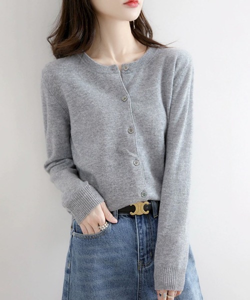 ラウンドネック×リブ編みが映える長袖カーディガンです。 首元はすっきりとしたラウンドネックで、インナーとのレイヤードも楽しめるデザイン。 身頃は程よくフィットするリブ編みで、すっきりとしたシルエットに仕上がります。 フロントはボタン開閉仕様で、羽織りとしてもトップス使いとしても活躍。 袖口・裾にもリブが施され、メリハリのある構成で手元まで上品にまとまります。 バックスタイルはシンプルに仕上げられ、前面のボタンと編地が際立つ印象です。 パンツにもスカートにも合わせやすく、オンオフ問わず使える万能アイテムです。 …………………… 厚さ:ふつう 伸縮性:あり 透け感:なし 裏地:なし ポケット:なし モデル:身長160cm(着用サイズ:フリー) 季 節:春/秋 …………………… ★お買いものをよりお楽しみいただく為に!★ ◆商品のお気に入り登録 お気に入りアイテムの完売カラーの再入荷通知や、ラスト1点の通知、セールの通知も受け取ることができます。 ◆ブランドのお気に入り登録 新商品や再入荷など、クーポン配布などのお得な情報を受け取ることができます。 ※商品画像は撮影時の光や角度により、実物の色味と異なって見える場合がございます。 ※撮影はサンプル品を使用しており、表示のサイズ感も実物とは若干異なる場合もございますので、予めご了承ください。 ※生産時期により色・素材・サイズ感など多少異なる場合がございます。予めご了承ください。※販売商品以外のモデルが着用している商品は、モデル個人の私物となります。予めご了承ください。