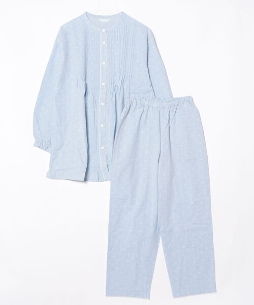 シャンブレー地ならではの、ナチュラルで奥行きのある色合いにドビードットで品のあるかわいらしさがあるナイトウエア。綿と「カポック」を混紡した素材を使用。さらりとした着心地のコットン素材です。丁寧に入れたピンタックやピコットが手の込んだ長袖パジャマ。袖はゴムギャザーにし甘いディテールをプラス。まくりやすい実用性もかなえました。※「カポック」とはカポックという樹木の実由来の植物繊維で中が空洞の繊維のため、空気を含みやすく、ふんわりとした軽さが特長。吸放湿性を兼ねそなえ、夏も冬も快適に着用できます。農薬や肥料、水をほとんど使用せず栽培でき、実を収穫するのみで、伐採の必要がなく環境負荷が非常に少ないと注目の素材です。