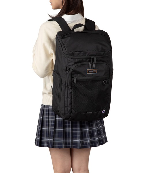プリントならではの雰囲気とカラーが、シンプルなボディに映えるデザイン。 毎日使うアイテムをしっかりと収納できる36Lサイズ。Championらしいスポーティなアクセントとして、機能的なメッシュポケットをデザインしたボックス型リュックです。 ■機能詳細 【容量】36リットル。毎日の通学や部活に対応する大容量サイズ。 【本体素材】耐久性に優れ、雨にも強いコーティング素材を採用。 【PC収納】15.6インチノートPCが収納可能。クッション付きなのでタブレットやPCをしっかり保護できます。(参考収納寸法 W38.5×H26.5×D2.cm) 【収納可能サイズ】B4ファイル収納可能。大きめのノートやプリント類、教科書も収納しやすいサイズ感。(参考収納寸法 38.0×27.cm) 【エキスパンダブル】 荷物の量に応じてメイン気室のマチ幅を広げ、容量の拡張が可能。【フロントメッシュポケット】 フロント面には、一目で中身のわかるメッシュファスナーポケット搭載。 【フロントファスナーポケット】 フロント面には、小物雑貨の収納にアクセスしやすいファスナーポケット付き。 【サイドポケット】 ペットボトルや折りたたみ傘などが収納可能なオープンポケット。 【ファスナー付きサイドポケット】 小銭入れや定期などを安心して収納できるササマチ&ファスナー付きサイドポケット。 【メイン気室】 PC、タブレット、ファイル等収納可能な仕切りポケット付き。 【Dリング】 チャームや定期をつなげることができるDリングをデザイン。 ■カラー 01:ブラック×アイボリーロゴ 07:ブラック×パープルロゴ 14:ブラック×オレンジロゴ