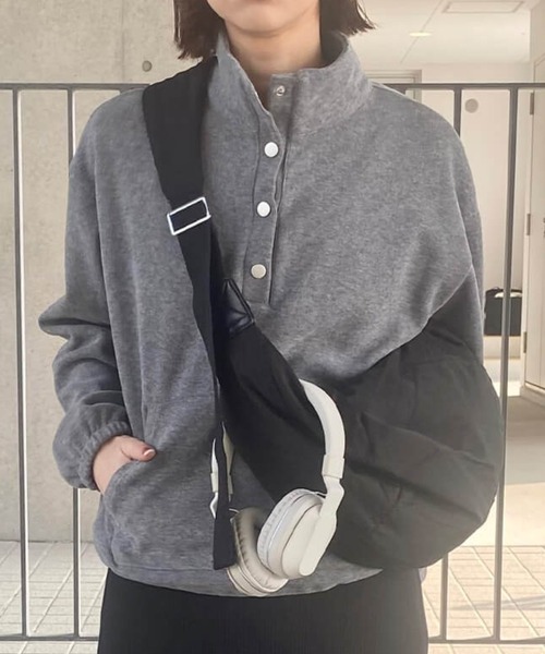 ハーフボタンソフトフリースプルオーバー(kiharu select) / プルオーバー トレーナー トップス ドットボタン オーバーサイズ ビッグシルエット ルーズ グレー