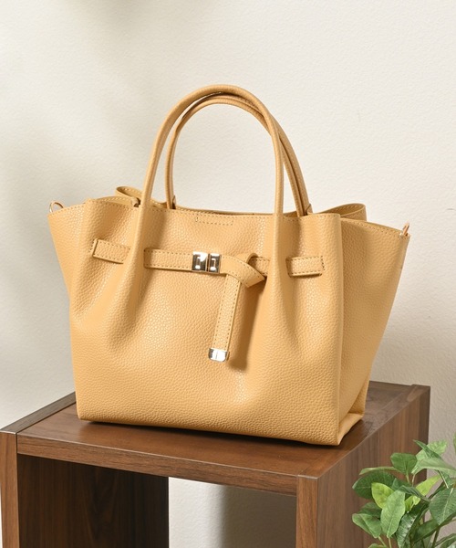 軽くて上品がうれしい【デザイン】かっちりとしたスクエアフォルムとベルトモチーフで洗練された雰囲気。必需品を持ち歩くのにぴったりなコンパクトサイズ。【素材・機能】大人な雰囲気のフェイクレザー素材。荷物が多くても安心の軽量タイプ。2Wayで使えるショルダーは取り外し可能。【スタイル】通勤などのきれいめスタイルにも、カジュアルスタイルの引き締め役としても大活躍♪※ショルダー取り外し可※湿度・摩擦により多少色落ちする可能性があります。品番:277-121-9515