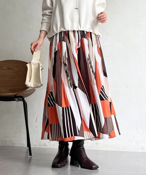 コーデを華やかにするオトナの気映えスカート‐POINT‐・目を惹く幾何柄が着るだけで一気に華やかな印象に◎・知的で都会的な雰囲気のある幾何柄がこなれ感を演出・動いた時の揺れ感が美しく、オトナの余裕を感じる上品さ・ウエストの総ゴムでストレスフリーな履き心地--------------------------------お手入れ:石油系溶剤(蒸留温度150℃~210℃、引火点38℃~)での弱いドライクリーニングができる。透け感:なし裏地:あり伸縮性:なしポケット:なし光沢:なし生地感:やや薄手--------------------------------【♡をクリックでお得な情報をお知らせいたします】〈商品のお気に入り登録〉お気に入りアイテムのお値下げ・再入荷・在庫ラスト1点など通知を受けることができます。〈ブランドのお気に入り登録〉un dix corsの新商品や再入荷、セール、クーポン配布などお得な情報を受けとることができます。--------------------------------※掲載商品のお色味は撮影場所やお使いのモニター環境により若干異なる場合がございます。特に、ロケ撮影では明るく見える傾向にございます。予めご了承ください。※生産の都合上、お届け時期が前後する場合がございます。※着用、お取り扱いの際は商品についている品質表示とアテンションタグを必ずご確認ください。