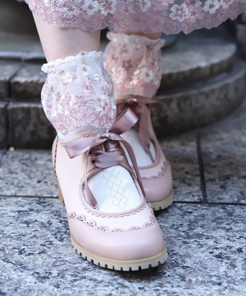 【アイテム説明】 【商品紹介】 淡い色合いが美しい、甲あきデザインのブーティーです。 【デザイン】 春を思わせるキナリ×ピンクの上品な配色デザインがポイント。 繊細なカットワークをほどこしたスカラップが、足元に華やかさを添えてくれます。 甲あきデザインで軽やかさがありながらも、レースアップでしっかりホールドしてくれるので、安定感と履き心地も◎ 【コーディネート】 桜モチーフのアイテムと合わせて、春の装いを楽しむのもおすすめ♪ 桜刺繍配色デザインボストン(VR612X26) 桜刺繍デザインベレー(JR632X26) 同じ色味のアイテムと合わせると、統一感が出て◎ 桜モチーフゴムベルト(BL631X280) 桜モチーフネックレス(BL643X201) 桜モチーフリングSET(BL645X61) 桜モチーフブローチチャーム(BL639X112) 桜モチーフ襟クリップ&イヤリング(BL649X89) アクセサリーをプラスすれば、より華やかな装いに仕上がります。 ▽ axes femme * アクシーズファム 【Concept】 axes femmeのお洋服であなたのライフスタイルに ほんの少しだけ彩る花が咲きますように。 ブランドを通して、彩る花たちが、 人と人、お客様や作り手たちの想いが世界中に繋がっていきますように。 ベル・エポック(フランスの古き良き時代)にパリジェンヌたちが愛したファッションや文化にルーツをおき、 独自のフェミニンスタイルを楽しむブランド ********************** .。.: お気に入り登録のおすすめ :.。. ∇気になるアイテムを登録∇ ハートをクリックしてお気に入りに登録すると 完売カラーの再入荷やラスト1点の通知、セールの通知を受けとることができます。 ∇ブランドを登録∇ 新商品や再入荷、セール通知など、いち早くブランドの情報を受けとることができます。 是非ご利用頂き、お買い物をお楽しみ下さい。 .。.: 商品について :.。. ・サイト上のカラー名と、お届け商品に記載されているカラー名が異なる場合がございます。 ・商品の色味は、撮影場所や光のあたり具合、お客様のお使いのPCのモニター環境などにより色味が違って見える場合がございます。 予めご了承の上ご注文下さい。 .。.: 返品・キャンセルについて :.。. ・着用、洗濯後の返品は致かねます。 ・商品到着後、着用前に商品を確認して頂きますようお願い致します。