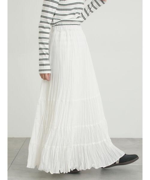くしゅっとしたワッシャー加工が可愛らしい表情感を生み出すスカート。 ティアード切り替えでたっぷりとボリュームがあり、スタイリングに立体感を演出します。 ラクに着用できるウエストゴム仕様がポイント。 カットソーやブラウスなど、様々なトップスと相性の良いアイテムです。 【その他採寸】 F ウエスト:[ゴム仕様]64cm ※商品画像は、撮影環境やお客様のご利用のPC・スマートフォンのモニター環境などにより実物と色味に差異がある場合がございます。 ★《お気に入り登録》でお得な情報をGET★ ① 商品ページ内のハートマークをクリック! ② 以下通知が受け取れます! 「再入荷」「ラスト1点」「特別セール」etc.. \ブランド、ショップのお気に入りも是非!/