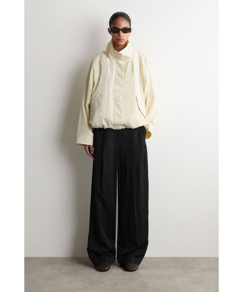 このモダンなジャケットは、ユーティリティを抑えたアレンジで紹介します。リラックスしたシルエットに仕立てられたこのアイテムは、リッチなキャラメルトーンのナイロン素材を使用し、ファンネルネック、フラップポケット、そしてウエストのエラスティックドローストリングで、シルエットのアレンジを楽しめます。 ・リラックスフィット ・スナップボタンとボタン留め ・洗濯機洗い可 Sサイズの背面長は63cmです。モデルはSサイズを着用しています。
