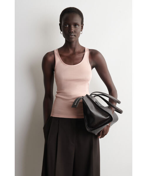 今シーズンのウィメンズウェアコレクションは、モダンなエレガンスを体現するワードローブの要となるアイテムに焦点を当てています。このタンクトップは、贅沢な柔らかさを持つコットンジャージー素材を使用し、軽やかで滑らかな着心地を実現しています。スクープネックラインには、同系色のサテントリムが施され、洗練された仕上がりとなっています。・スリムフィット・160gsm・洗濯機洗いSサイズの背面長は57.1cmです。モデルはSサイズを着用しています。