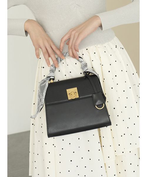 【ヴィンテージキーパーツが映えるスムースフェイクレザーバッグ】【Design/Styling】四つ角のスタッズでスパイスを効かせたヴィンテージ調のオリジナルキーパーツがクラッシックなバッグ。リッチな雰囲気を纏うカーフ調スムースフェイクレザーを使用し、上品さと扱いやすさを両立しました。付属のレーススカーフは、ハンドルに巻いたり結んだりとアレンジ自在で、コーディネートに合わせて表情を変えられるのも魅力。ショルダーは少し短めに設定し、持つだけでスタイルアップが叶う絶妙なバランスに。コンパクトながら、お財布・携帯・+αがしっかり入るデイリー向けの収納力を確保。内側・外側には便利なポケット付きで、機能性も抜群。オンオフ問わず活躍する万能バッグです。※照明の関係により、実際よりも色味が違って見える場合があります。またパソコン・スマートフォンなどの環境により、若干製品と画像のカラーが異なる場合もございます。予めご了承ください。商品の色味は、商品単品画像をご参照下さい。※商品画像はサンプルのため、色味やサイズ等の仕様に変更がある場合がございますので、予めご了承ください。