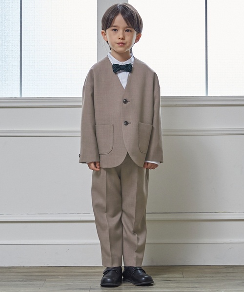 きちんと感があるノーカラージャケットとロングパンツのセットです。 シンプルなシャツがついており、手軽にコーディネートが完成します。 蝶ネクタイはクリップタイプなので簡単につけ外し可能。 パンツの後ろウエストは、お着替えしやすいゴム仕様です。 両サイドにポケットつき。 商品の色味につきましてご使用の端末やモニター環境により、色の見え方が多少異なる場合がございます。あらかじめご了承ください。 【透け感】透けない 【生地の厚さ】普通 【伸縮性】あり 【裏地】あり 【ポケット】あり 【アジャスター】なし