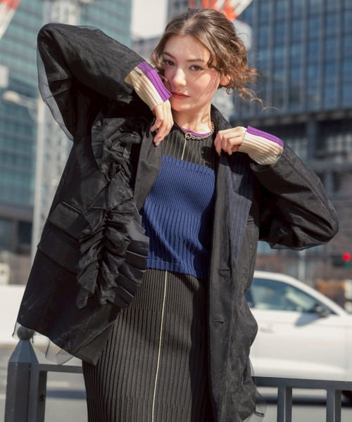 麻調のポリエステルレーヨンストレッチの上に、全体をシアーチュールでレイヤードした華奢で軽く見えるリバーシブルテーラージャケット。肩から垂らす、プリーツフリルがトレンド感をプラス。 釦で取外し可能。 リバーシブルの裏側は、ストライプの背裏、縫い代パイピングがデザインポイントになっています。 裏側デザインを敢えて表で着用できるお洒落なアイテムで春夏秋まで活躍できます。 3WAYジャケットは、オケージョンシーンにもOKで着回し効くアイテムになります。 AULA AILA/アウラアイラ 自分らしさを大切にしながら、魅力を引き出し、 何気ない日常に彩りを添え、纏うという高揚感から心を豊かにする、大人のハイエンドカジュアル 【お買いものをお楽しみいただく為に!】 ▼商品のお気に入り登録 完売カラーの再入荷通知や、ラスト1点の通知、セールの通知も受け取ることができます。 ▼ブランドのお気に入り登録 新商品や再入荷など、いち早くブランドのお得な情報を受け取ることができます。
