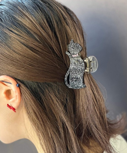 『 きらめく黒猫のバンスクリップ 』▪ちょこんとお座りする黒猫に癒されるヘアアクセサリー♡▪ボディ全体に散りばめられた微細なラメの、派手すぎず上品な輝きが大人可愛いアイテム◎▪首元には小さなピンクのラインストーンがあしらわれ、猫の可愛さを引き立てるアクセントに!♡ Color ♡A,ブラック♡ Material ♡アクリル