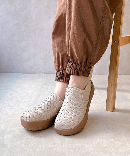 編み込みデザインが上品で、シンプルながら存在感のある厚底スリッポン。 柔らかなアッパー素材が足にやさしくフィット。 履き口はサイドゴア仕様で脱ぎ履きもしやすいですよ。 ヒールは約6cmあり、無理なく自然にスタイルアップできるのが魅力。 厚底で安定感のある履き心地も◎。 クッション性のあるインソールを使用しているため、長時間の歩行でも疲れにくく、デイリー使いからお出かけまで幅広く活躍します。 春先から秋口までシーズンレスでお使い頂けます! ●厚底ソールで楽なのに脚長効果アップ ●普段使いにオススメ!! ●カジュアルにもきれいめにも合わせやすい一足 【サイズ】 S(22-22.5cm) M(23-23.5cm) L(24cm) LL(24.5cm) ヒール高:約6cm ※ATTENTION※ ◇汗や雨などの湿気、摩擦などによって色落ちし、靴下などの衣服に着色する可能性がございます。ご使用には十分にご注意ください。 ◇装飾品は取れやすいので、お取扱い・引っ掛けにご注意ください。 ◇商品画像の撮影は室内で行われているため、ライティングにより実物と色味が少し異なる場合がございます。 ◇商品のお気に入り登録がおすすめです! 再入荷などの通知を受け取ることができます。 Rin Clover ブランドコンセプト どこかボーイッシュで、どこか可愛らしいをテーマに 個性のあるデザインを独特な素材感で表現した カジュアルシューズ。 雑貨要素の高さと、リーズナブルなプライスラインが 人気のプライベートブランドです。 履き心地にもこだわっていますので、履きやすく デイリーに活躍してくれます。