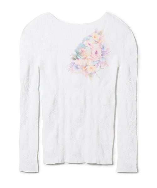 くるみ割り人形~花のワルツより/ブーケのプリントが華やかなトップ 【デザインポイント】 くるみ割り人形~花のワルツをイメージしたブーケモチーフのプリント柄がデザインポイントのトップ。 衿元のプリントは顔映りを華やかに見せる。 クリスマスギフトとしてもおすすめ。 【素材】 縫い目のないストレスフリーな着心地で、軽く吸い付くようなフィット感。 オリジナリティあふれる多彩な編み柄とフリーカットも特徴。 《生地》マット&レーシー 《伸縮性》ハイストレッチ 【おすすめコーデ】 レオタードやブラトップの上に着用してパンツ、レギンス、スカートなどお手持ちのボトムスとあわせて。 バレエやヨガのレッスン、フィットネスのワークアウトにおすすめ。 ●サイズ:M ●着丈:約49cm ●袖丈(袖下):約37cm ●身幅:約29cm ●カラー:000ホワイト、040ロイヤルピンク