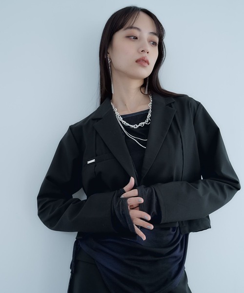 ーーードライタッチなTR素材を使用した縦の切り替えデザインがポイントのショート丈ジャケットーーーpoint□フロントに縦切替を入れることで、シンプルながらもしっかりとデザイン性を感じられる1枚□視覚的に縦ラインを強調することで、スタイルアップして見えるのがポイント□後ろのタックにベルトデザインと胸元のシルバープレートがアクセント□裾は段差を付けたデザインにすることでウエストにデザインのあるボトムスを着た際に綺麗に見えるデザイン□ドライタッチなポリエステルレーヨン素材を使用し、シャープで綺麗めな印象fabric「CLEAR TEXTURE」さらっとした肌ざわりと微光沢仕上げのクリアな質感が春夏シーズンにピッタリな生地を使用。年々暑さが増すなか、さらっと洗練された印象で着ていただけるシリーズstyling骨格ナチュラル:前閉めでボトムスはワイドシルエットのものをチョイス。足が長く、すらっと見えるのでスタイルアップできます。骨格ウェーブ:ウエスト位置の高いワンピースやスカートで大人っぽく女性らしいスタイルが◎チョーカーなどのネックレスで首を長く見せるのもおすすめ。骨格ストレート:Vネックトップスで首回りをすっきり見せ。ナローシルエットのスカートや細身のパンツでIラインを強調すると◎set itemCLEAR TEXTUREシリーズとしてショートジャケット、ワイドパンツのご用意あり。セットアップとしても着用していただけます。セットアップ対応のワイドパンツはコチラを検索→【640709】セットアップ対応のナロースカートはコチラを検索→【640710】※加工を施した画像を使用しております。実物と色味が異なる可能性があるため、色味は詳細後ろにある生地寄り画像を参考にお願いいたします。あらかじめご了承下さい。