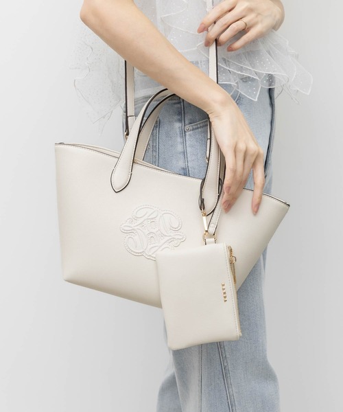 ◆2026SS新商品◆ フロントにあしらったRANDAオリジナルのモノグラムエンボスが目を惹くトートバッグ。 ベーシックかつ上品なデザインで、オンオフ問わず使えるバッグです。 POINT ・フロントにあしらったRANDAオリジナルのエンボスモノグラムパーツ ・開口部が広く、物を出し入れしやすい ・両サイドのスナップボタンを止めるとキューブ状に変形するデザイン ・便利なミニポーチ付き 商品仕様 ・長さ調節可能なショルダーベルト(取り外し可能) ・開閉はマグネット ・内側オープンポケット×1 【サイズ感】長財布:〇、ペットボトル(500ml):〇、スマートフォン(14.7×7.2㎝):〇、ポーチ:〇、カードケース:〇、ハンカチ:〇、折りたたみ傘:〇、リップ:〇、ワイヤレスイヤホン:〇、クリーム:〇、A5手帳:〇
