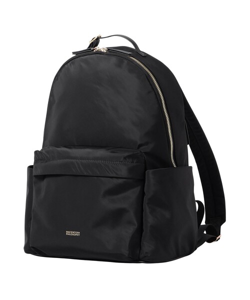 8つのポケットで収納力抜群のバッグパック> 大容量かつ軽量で、快適な使い心地の機能バッグパック。 A4サイズや14インチのPCもすっきりと収まるサイズです。 PCやタブレットの収納に便利な背胴側の内ポケット、財布や携帯などを背負ったまま取り出し可能な背面の隠しファスナーポケット、ペットボトルや折り畳み傘の収納にも便利なサイドポケットなど計8つのポケット付き。 ファスナーやバックルにはゴールドパーツを使用し、光沢のある素材やで上品さをプラス。 おでかけシーンや通勤など、幅広いスタイリングに合わせやすく、オールシーズン活躍します。 ※この商品はサンプルでの撮影を行っています。 実際の商品とイメージ、仕様が異なる場合がございます。