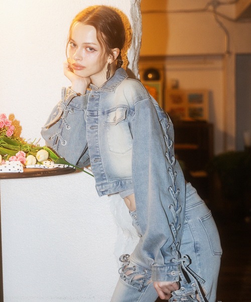 ショート丈でスタイルアップ効果抜群のデニムジャケット。袖の後ろにあしらったレースアップデザインがポイントで、後ろ姿まで可愛さを演出します。軽やかなショート丈は、ハイウエストのボトムスやワンピースとも相性◎。フロントはシンプルにまとめ、袖のレースアップだけで存在感を発揮。カジュアルだけどどこかガーリーな、ストリートにも馴染む万能ジャケットです。**********************透け感:なし裏地:なし生地の厚さ:普通**********************※モニター・環境等により実際の商品と多少色味が異なって表示される場合がございます。予めご了承をお願いいたします。※サイト上のカラー名と、お届け商品に記載されているカラー名が異なる場合がございます。※他のキャンペーンにより、期間中に価格が変動する場合があります。※セールは予告なく終了させていただく場合もあります。