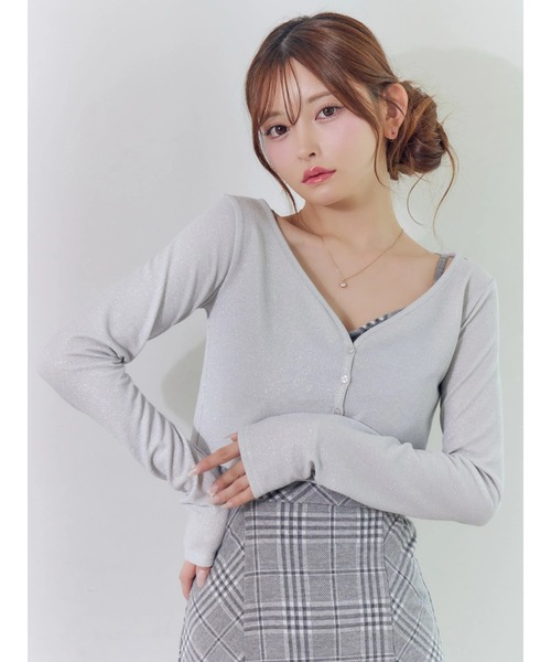 さりげなく輝くラメ糸を織り込んだリブ素材が、上品な華やかさを演出するカーディガンです。 細リブが縦ラインを強調、コンパクトなシルエットでもすっきりとした印象に仕上げてくれます。 デコルテを美しく見せるVネックデザインと、程よいショート丈がトレンド感をプラスします。 ボタンを留めてトップスとしても、さらっと羽織ってカーディガンとしても着用できる万能アイテムです。 デニムと合わせたカジュアルスタイルから、 スカート合わせのフェミニンコーデまで幅広く活躍してくれます。シーズンレスで使いやすく、コーデに程よいきらめきを添えてくれる1枚です。---------------------------------------------- ♡商品のお気に入り登録 完売カラーの再入荷通知や、ラスト1点、セールの通知をお知らせ致します。 ♡ブランドお気に入り登録 新商品や再入荷など、いち早くブランドの情報を受け取ることができます。 ---------------------------------------------- ※サイズは、実寸サイズを測っているため多少誤差がでる場合があります。 ※重量は目安として、参考にして下さい。 ※商品画像は着用イメージです。 光や角度により、実物と色味が異なる場合がございます。 商品の撮影はサンプルで行っている為、カラーやサイズ等に変更がある場合がございます。 ご覧のモニター環境により実際の商品と多少色味が異なって見える場合がございます。