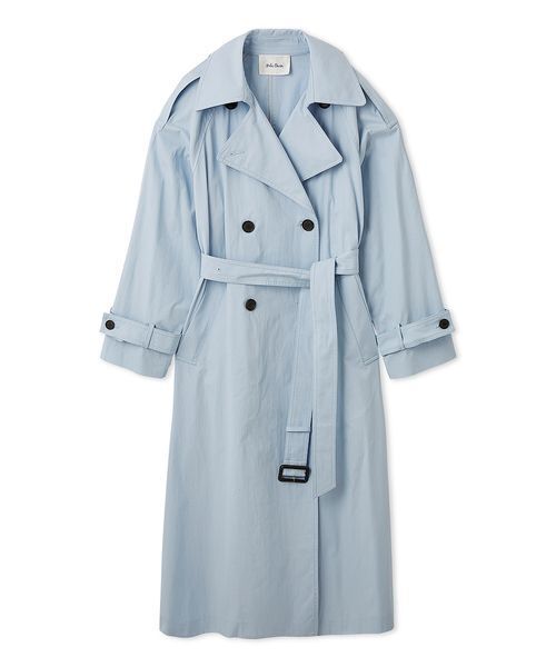 【撥水】【ラフに羽織るだけでサマになる、シンプルでバランスのよいトレンチコート。長い期間、シーンを選ばず活躍する一枚】【Design/Styling】ミニマムなデザインながら、ディティールから生地まで選定にこだわった、着映えするトレンチコートです。モード感のあるオーバーサイズで、上からバサッと羽織るだけでサマ見えする、こなれた雰囲気がカッコいい一枚。エポーレットをバランスよく配し、あえてガンフラップなどをつけないことで、すっきりとシンプルなスタイルを実現。女性らしさもアップさせています。袖口のベルトは、ボタンでサイズ感調整可能。またウエストにも取り外しできるベルトつきです。結んで垂らしたり、きゅっと絞ったり、アレンジして楽しめます。お仕事などのきれいめスタイルにも、大人カジュアルなスタイルにもマッチする、今年らしい一枚です。【Fabric】撥水機能付きで、春の長雨シーズンや梅雨時、突然の雨などでも対応してくれるファブリックを使用。カラーは3色をご用意。<BEG>と<LBLU>は、コットン混の無地のツイル素材に、ハリ感がありつつ肌触りのよいピーチ加工を施しています。<MIX>は表面に凹凸があり、軽さのある素材を使用しています。細かい織り地が、味わい深く高級感のある素材。【本体】透け感:なし裏地:なし伸縮性:なし生地の厚さ:普通※照明の関係により、実際よりも色味が違って見える場合があります。またパソコン・スマートフォンなどの環境により、若干製品と画像のカラーが異なる場合もございます。予めご了承ください。商品の色味は、商品単品画像をご参照下さい。 ※商品画像はサンプルのため、色味やサイズ等の仕様に変更がある場合がございますので、予めご了承ください。