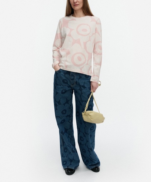 【テキスタイルデザイン:Maija Isola(マイヤ・イソラ)】 Unikko(ウニッコ):花フェミニンにもモダンにもコーデできるUnikko柄カットソー。着こなしの主役に、レイヤードのインナーにと幅広く活躍します。すっきりとしたシルエットも、着回しやすさのポイントに。※品質表示は、Marimekko社の付けた洗濯表示を日本国内の基準に合わせ付け替えております。本国のタグはカットされておりますので、予めご了承ください。※断裁により商品ひとつずつの柄の出かたが異なるため、表示画像のディテールと多少異なるデザインのものが届く場合がございます。予めご了承ください。モデル着用サイズ:M/038/004