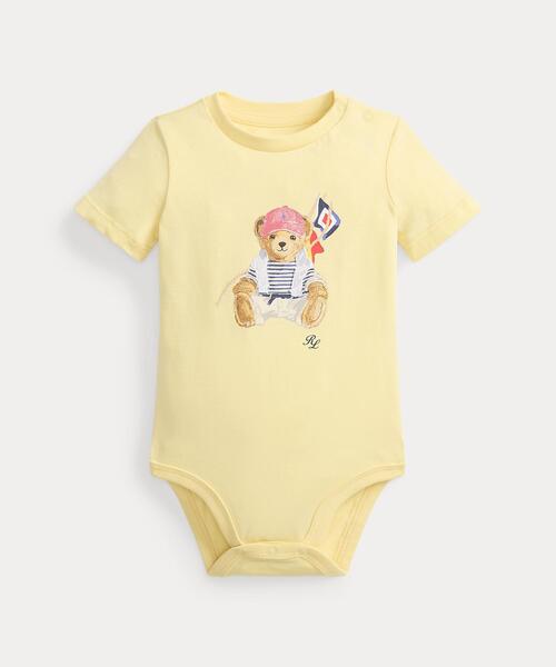 シグネチャーのRLルックに身を包み、セーリングにのぞもうとする人気のマスコットをあしらったワンピース。 ・クルーネック。 ・左肩にスナップ2つで留めるプラケット。 ・半袖。 ・フロント中央にPoloベア、ノーティカルフラッグ、"RL"の文字のプリント。 ・裾にリングスナップ。 ※商品の色味は、光のあたり具合など諸条件により色感が多少異なって見える場合がございますので予めご了承下さい。 ※サイズにより、ボタンの数・有無が異なる場合がございます。 BABY 3M-24M