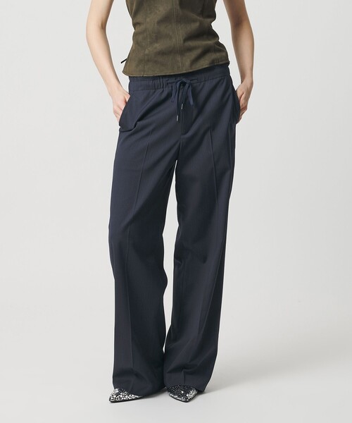 きちんと見え&カジュアルさを兼備したバランス力があるマニッシュなパンツ ■デザイン センタープレス入りで上品な印象へ導くストレートシルエットの万能ストライプ柄トラウザー。 ウエストにはカットオフデザインと、サイズ調整が可能なドローコードを施し、リラクシーな雰囲気をミックスした一着です。 オン・オフ問わずさまざまなシーンで活躍する汎用性のあるアイテム。 ■素材 ストライプ柄のトロピカル素材を使用。 ■コーディネート 同素材のジャケットとセットアップでこなれ感を演出するのが◎。 Tシャツやカットソーなどのカジュアルなアイテムともバランスよく着こなせおすすめです。 ・生地は異なりますが、対象品番:56141000015と同デザインです。 ・同シリーズで下記アイテムのご用意もございます。 ジャケット(対象品番:56221000001) スカート(対象品番:56241000001) ============================ 裏地:あり 透け感:なし 伸縮:ややあり 光沢感:なし 機能性:防シワ ケア方法:ドライクリーニング ============================ 【注意事項】 ※商品に「取り扱い上の注意書き」、「洗濯表示」がございます場合は、使用前に必ずご確認ください。 ※商品画像は、光の当たり具合やパソコンなどの閲覧環境により、実際の色味と異なって見える場合がございます。あらかじめご了承ください。 ※商品の色味の目安は、商品単体の画像をご参照ください。 ※画像の商品はサンプルです。 店舗へお問い合わせの際は、全国のATTISESSION各店舗まで下記の品名/品番をお申し付けください。 品名:ATT PE/W/R STRT TRS 品番:56141000006