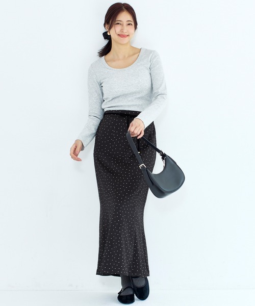 軽やかに揺れる、サッカーサテンナロースカート■デザイン・シルエット表情のあるサッカーサテン素材を使用した、すっきりとしたナローシルエットのスカート。ウエストにはリボンをあしらい、さりげない可愛らしさをプラス。ドット柄を施した大人可愛いデザインです。■素材・凹凸感のあるサッカー素材で、肌離れが良く快適・さらっとした着用感で、ロングシーズン着用可能・デイリーに取り入れやすい素材感■コーディネートシンプルなTシャツやカットソーと合わせて、柄を主役にしたスタイリングに。ブラウスやシャツと合わせれば、フェミニンで落ち着いた印象にも。トップスをインして、ウエストリボンをポイントにした着こなしもおすすめです。伸縮性:裏地/ウエスト部分のみあり透け感:なし裏地:ありポケット:なし生地感:凹凸のある薄地の柔らかい生地注意点:お洗濯方法によっては縮みや色あせの可能性あり。乾燥機等のご使用はお控え下さい。▼生地や素材の性質により2cm前後サイズ誤差が出る場合がございます。▼モデル着用写真は撮影環境により、多少実際のカラーと異なる場合がございます。▼色落ちの恐れがありますので、他のものと分けて洗って下さい。▼当商品は機械による生産の過程上、『生地を織る際の糸の継ぎ目』や多少の『ほつれ』、繊維の『混紡』、形やサイズに多少の『誤差』が生じる場合がございます。ボトムス スカート ロングスカート サッカーサテン ナロースカート ウエストリボン ウエストゴム ドット フレア ロング丈 きれいめ 26ss コカ COCA coca COCA coca
