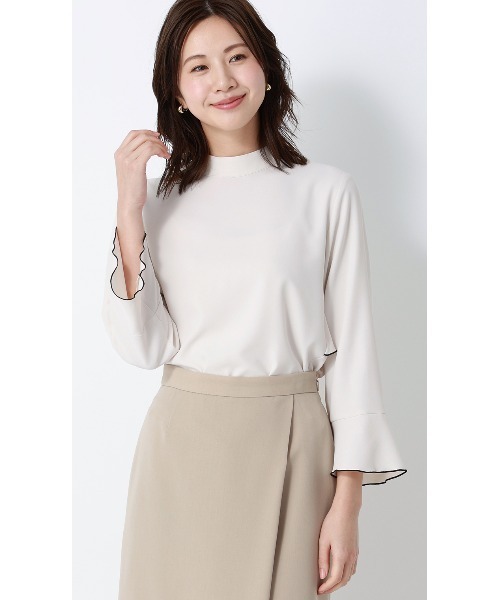 【商品詳細】 生地のドレープが上品なハイネックブラウスです。背面はフリルを重ねてより華やかな印象に。配色のメローを施し、一枚でも着映えするデザインです。ビジネスの他、オケージョンシーンにも活躍してくれます。 ■カラー:ライトベージュ×ブラックメロー 【サイズスペック】 [M]着丈:57cm バスト:97cm 肩幅:39cm 裾囲:114cm 袖丈:49.5cm [L]着丈:58cm バスト:100cm 肩幅:40cm 裾囲:117cm 袖丈:50.5cm 【機能性】 防シワ UVカット 【仕様】 長袖 ハイネック バックフリル フリル袖 1枚仕立て ーーーーーーーーーーーーーーーーーーーーーーーーーーーー 【スタッフ着用コメント】 ①女性スタッフ 身長:158㎝ ・着用サイズ Mサイズ ・着用感 サイズ感はちょうどいいです。 前はシンプルなカットソー、首元高めで落ち着いたデザイン。 広い袖口、背にはフリルが付いており、可愛いデザイン性です。 ーーーーーーーーーーーーーーーーーーーーーーーーーーーー 【おすすめシーン】 食事会、お呼ばれ、パーティー オフィスカジュアル、ビジネス、通勤、仕事 セレモニー、2次会、1.5次会、成人式、同窓会、謝恩会 入学式(入園式)、卒業式(卒園式) 演奏会、発表会、参観日などの学校行事 【商品に関するご注意】 ■商品画像はサンプルのため、色味やサイズ等の仕様に変更がある場合がございますので、予めご了承ください。 ■サイズスペックは仕上がりサイズを記載しております。 ■ブラウザやお使いのモニター環境、また撮影時の室内外の光加減により、実際の商品と掲載画像の色味が異なる場合がございます。 ■生地や仕様・デザインにより、着用感や実際のサイズ表に若干の誤差が生じる場合がございます。予めご了承ください。