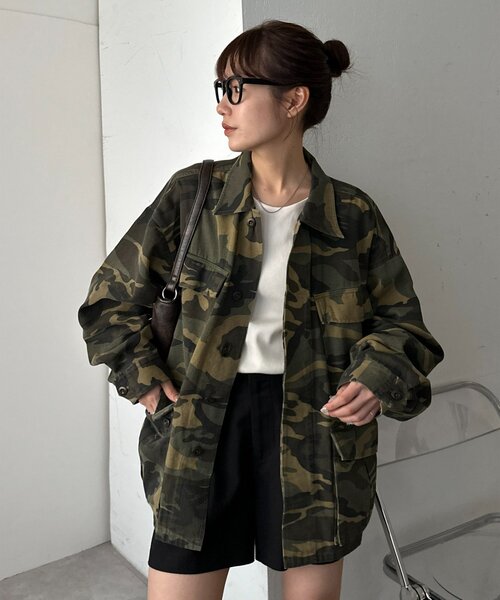 【Enlude 2026 ss collection】 Enludeアイテム一覧はこちら▶▶ 羽織るだけで、こなれ感。自由に着こなす大人のカモフラージュ ・パートナーとも共有できる、ユニセックス仕様のオーバーサイズシルエット。 ・ヴィンテージライクな風合いと、しなやかな着心地を両立したこだわりの生地。 ・コーディネートに馴染む落ち着いたトーンの迷彩柄。 ・季節の変わり目に重宝する、ライトアウターに最適な絶妙な厚み。 ・気になるヒップ周りを自然にカバーする、安心感のある着丈。 ・ポケットは内ボタン付き ●スタイリング ・ヒップまで隠れるゆとりのあるサイズはショートパンツと合わせたこなれ感のあるコーデがおすすめ。 ・ボリューム感のあるボトムスと合わせれば、メンズライクなコーデに ●おすすめのスタイリングアイテム ▶ウールブレンドショートパンツ ▶アソート刺繍ロゴシャツ ▶ダブルニーバレルペインターパンツ *********************** 洗濯方法:手洗い可能 裏地:なし 透け感:なし 伸縮性:なし 光沢感:なし 生地の厚さ:普通 *********************** ●STAFF着用コメント 158cmレディーススタッフ:ゆるっと着ることができるオーバーサイズですが、袖口はボタンで空き具合を調節できます○迷彩柄が目を惹くので、シンプルなアイテムを合わせてコーデの主役にしたいです。 170cmメンズスタッフ:メンスが着ても余裕のあるサイズ感です。Tシャツやシャツなど薄手のトップスだけではなく、スウェットの上から着てもリラックスして着ることが! 【お取り扱いの注意】 ※着用時、洗濯時は必ず取り扱い表示・タグをご確認の上、お取り扱いください。 ・手洗い:30℃まで可能 ・手洗いは短時間で軽く押し洗いをしてください。 ・洗濯ネットを使用してください。 ・蛍光増白剤入り洗剤を使用しないでください。 ・濃色製品は、色移りすることがありますので、他の物と分けて洗濯してください。 ・浸け置き洗いは避け、洗濯後はすぐに脱水して、形を整えて陰干ししてください。 ・漂白:不可 ・タンブル乾燥:不可 ・アイロン:低温120℃まで(アイロンの際は、当て布をして軽く当ててください。) ・ドライクリーニング:可能 ・素材の特性上、洗濯により縮みやねじれ等が生じることがあります。 ・着用中の汗や雨、摩擦により色移りすることがありますので、白、淡色の物との重ね着は避けてください。 【カラー表記について】 システム上の都合により、一部カラー名がサイト表記と異なる場合がございます。 【入荷時期について】 入荷日ごとに販売数量が決まっているため、オンラインでは完売後に次期納期の数量にて予約販売を行っております。 店舗入荷時期と予約商品のお届け時期が異なる場合がございますので、予めご了承ください。 ※追加入荷のある商品もございますので、詳しい店舗入荷時期に関しましてはお近くの店舗へお問い合わせください。 ※店舗の在庫状況に関しましては、こちらのページに記載されている「店舗在庫」から確認にしていただけます。 「在庫あり」の表記でも、お取り置き分などでお客様に販売できない場合がございます。 ※予約商品でも、店舗では追加がない場合もございます。ご了承ください。 ※初回予約商品でも配送処理が発生するため、店舗より遅れてのお届けとなる場合がございます。