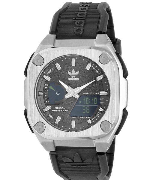 adidas originalsスポーツ界やストリートカルチャーを牽引する世界屈指のスポーツメーカー。1949年、アドルフ・ダスラーによってドイツのバイエルン州に設立され、スポーツメーカーとして確固たる地位を獲得しました。その後、ストリートスポーツブランドとして、トレンドを取り入れた幅広いジャンルの製造から販売まで展開し、世界的人気を得ています。FASHION/ファッション---------------------------------------------------------お気に入り登録のオススメ▼商品のお気に入り登録再入荷、残り1点、セールなどの通知を受け取ることができます。▼ブランドのお気に入り登録新商品や再入荷など、いち早くブランドの情報を受け取ることができます。---------------------------------------------------------Spec文字盤カラー:ブラック防水機能:10気圧防水駆動方式:クォーツガラス素材:ミネラルガラスサイズ:ケース縦:46mm×横:45mm×厚さ:15mm重さ106g保証:保証年数1年(自然故障保証)付属品:箱/取扱説明書/保証書モニター電池使用のため、受け取り時に電池が切れている可能性がございます。保証期間内かつ初回の電池切れに対しては、1回目のみ無償電池交換をさせていただきます。保証期間が経過している場合は、有償での対応になりますので、予めご了承ください。