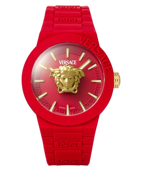 VERSACE/ヴェルサーチェ 1978年にミラノで設立された「VERSACE」(ヴェルサーチェ)は、ジャンフランコ・フェレ、ジョルジオ・アルマーニとともに「ミラノの3G」と呼ばれるジャンニ・ヴェルサーチにより誕生したイタリアブランドです。伝統的且つ古典的なヨーロッパスタイルに現代の感性を吹き込んだ、エレガントさと華やかさのあるデザインが特徴です。古典と現代の完璧なまでの融合は年代・性別を問わず、世界中の幅広い世代から指示を得ています。オートクチュールや舞台衣装を数多く手掛けている、類まれな芸術性を持ったジャンニ・ヴェルサーチによって、世界中を魅了した「VERSACE」。セレブリティをはじめ、とても多くのファンに愛され続けている、世界に誇るイタリアンブランドです。 V POP 立体的なメドゥーサ、グレカ柄のインナー リング デザイン、シリコン バンドにあしらったヴェルサーチェのレタリングなど、メゾンらしいシンボルをところどころに散りばめたスタイル。 --------------------------------------------------------- お気に入り登録のオススメ ▼商品のお気に入り登録 再入荷、残り1点、セールなどの通知を受け取ることができます。 ▼ブランドのお気に入り登録 新商品や再入荷など、いち早くブランドの情報を受け取ることができます。 --------------------------------------------------------- Spec 文字盤カラー:レッド 防水機能:日常生活防水 駆動方式:クォーツ ガラス素材:サファイアガラス サイズ:ケース縦:42mm×横:42mm×厚さ:14mm 重さ70g 保証:保証年数2年(自然故障保証) 付属品:箱/取扱説明書/保証書 モニター電池使用のため、受け取り時に電池が切れている可能性がございます。 保証期間内かつ初回の電池切れに対しては、1回目のみ無償電池交換をさせていただきます。 保証期間が経過している場合は、有償での対応になりますので、予めご了承ください。
