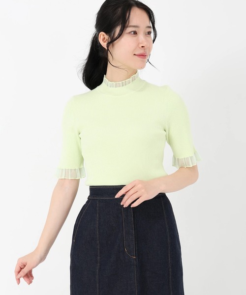 *エレナストレッチ 首元のフリルが奏でる、可憐なニュアンス。シアーな抜け感を楽しむ大人のフェミニンニット。 纏うだけで、日常の風景が少しだけドラマティックに。首元のシアーなフリルディテールが視線を惹きつける、人気ニットの5分袖verが登場。 ■ Design & Fabric 一番のポイントは、透け感のある素材で仕立てた繊細なフリルネック。 顔周りに程よいボリュームと華やかさを添え、ネックレスいらずで着映えを叶えます。 5分袖のデザインは、気になる二の腕をスマートにカバーしつつ、季節の変わり目にも重宝する絶妙なバランスです。 素材には、滑らかなタッチと優れた伸縮性を誇る「エレナストレッチ」を採用。 身体のラインにしなやかにフィットしながら、快適な着心地をキープします。 クリーンな表面感なので、甘いディテールもどこか知的な印象に。 ■ Styling ドットJQタックスカート(61-14107)のようなボリュームのあるボトムにインして、クラシカルなレディスタイルに。 また、タックテーパードパンツと合わせれば、甘さを抑えたスタイリッシュなオフィスコーデが完成します。 一枚着としてはもちろん、ジャンスカやジレのインナーとして首元のフリルを覗かせるレイヤードスタイルも◎ 《お気に入り登録》はお得がいっぱい! 「商品」のお気に入り登録で、再入荷、ラスト1点、セールなどお得な通知を受け取ることができます。 「ブランド」のお気に入り登録で、新商品や再入荷などいち早くブランドの情報を受け取ることができます。 是非、この機会にご登録くださいませ。