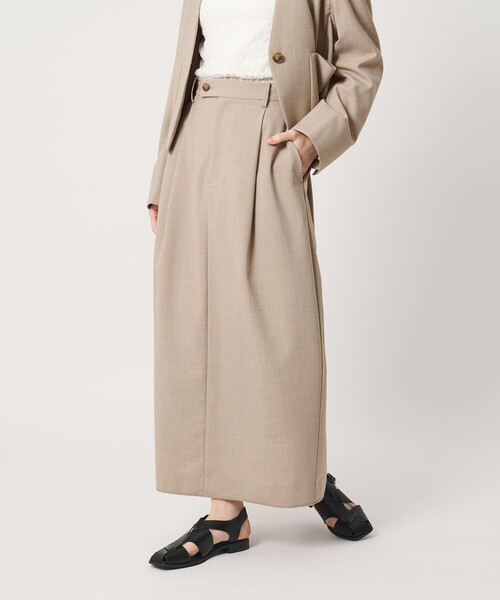 テイストを問わないスマートなルックスが魅力のタックスカート ■デザイン スラックスのようにベルトディテールを取り入れたタックスカート。 サイドにふんわりと膨らみを持たせて立体的なシルエットに仕上げました。 前後共にタックが施され、体のラインを拾いにくいのも魅力。 ロック始末の裾でほどよくカジュアル感をプラスしたスカートは普段使いはもちろん、きれいめ見えも叶う着回し力の高いアイテムです。 ■素材 ポリエステルに毛をブレンドしたトロピカル生地。 さらりとした質感で季節の変わり目から着用しやすい素材感が魅力です。 ■コーディネート 同素材のジャケットとのセットアップも◎。 ローファーやバレエシューズなど、品の良さがありながらもリラックスムードの感じられるアイテムとのコーディネートがおすすめです。 ・同素材でジャケット(対象品番:16221000020)のご用意もございます。 ============================ 裏地:あり 透け感:なし 伸縮:なし 光沢感:なし ケア方法:ドライクリーニング ============================ 【注意事項】 ※商品に「取り扱い上の注意書き」、「洗濯表示」がございます場合は、使用前に必ずご確認ください。 ※商品画像は、光の当たり具合やパソコンなどの閲覧環境により、実際の色味と異なって見える場合がございます。あらかじめご了承ください。 ※商品の色味の目安は、商品単体の画像をご参照ください。 店舗へお問い合わせの際は、全国のBEAUTY&YOUTH各店舗まで下記の品名/品番をお申し付けください。 品名:BY PE/W TUCK SK 94 品番:16241000011