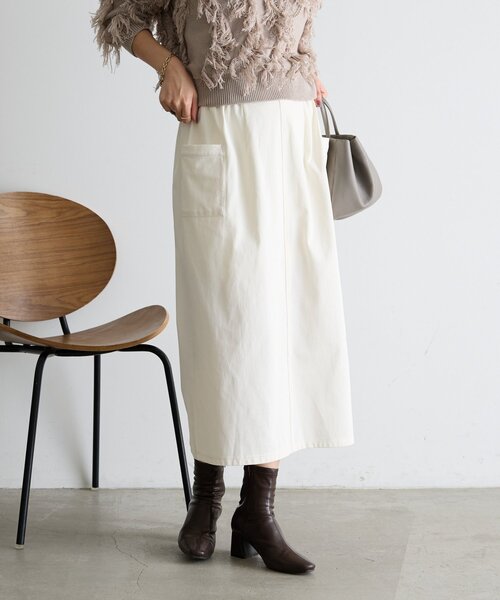 -商品ポイント-・縦のラインを強調してスタイルアップが叶うナロースカート。・伸縮性があり足さばきしやすく、履き心地抜群。・サイドにポケットがあり、太もものラインを拾いにくく安心感があるところもポイント◎・コンパクトな丈感なので低身長さんにもおすすめのアイテムです。・スニーカーからブーツ、サンダル合わせなどオンオフ問わず活躍。ーマテリアルー■透け感:なし (アイボリー ややあり)■裏地:なし■伸縮性:ウエスト部分のみあり■光沢感:なしー洗濯方法ー洗濯機洗い(弱)ー注意事項ー商品の画像はできるだけ実物に近い色味で掲載しておりますが、ご覧になるモニターや照明の環境により、実際の色味と若干異なって見える場合がございます。あらかじめご了承くださいませ。・画像の商品はサンプルです。実際の商品と仕様、加工が若干異なる場合があります。・サイズ表記はあくまで目安となります。__________________________________※取り扱いについては、商品についている品質表示でご確認ください。※照明の関係により、実際よりも色味が違って見える場合があります。またパソコン・スマートフォンなどの環境により、若干製品と画像のカラーが異なる場合もございます。予めご了承ください。※詳細画像の色合いをご参照ください。予めご了承ください。__________________________________【お買い物をよりお楽しみいただくために♪ 】▼ 商品のお気に入り登録お気に入りアイテムのお値下げ・再入荷・在庫ラスト1点など通知を受けることができます。▼ブランドのお気に入り登録Jena espace merveilleuxの新商品や再入荷、セール、クーポン配布などお得な情報を受けることができます。
