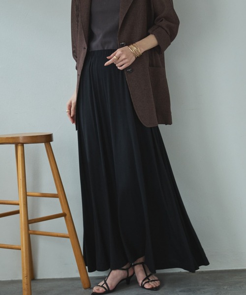 履き心地抜群!大人の女性にぴったりのナロースカート 【point】 ・すとんと落ちる綺麗なシルエットが魅力的なスカート ・軽さと滑らかさのある生地でラクなのに上品な印象に ・ウエストはゴム仕様でリラックスした履き心地 ・腰回りが広がらず、トップスを選ばず合わせやすいシルエット 【fabric】 ・柔らかくしっとりとした肌触り ・ご自宅でのお手入れ可能 透け感:なし 裏地:あり 伸縮性:あり 光沢感:なし 生地の厚さ:普通 【注意事項】 ・画像の商品はサンプルです。 実際の商品と仕様、加工が若干異なる場合があります。 ・サイズ表記はあくまで目安となります。 ・取り扱いについては、商品についている品質表示でご確認ください。 ・照明の関係により、実際より明るく見える場合がございます。またパソコンなどの環境により、製品と画像のカラーが若干異なる場合がございますので、予めご了承くださいませ。 ■お気に入り登録がオススメです!■ 《商品のお気に入り登録》 カラー・サイズ選択の横の「♡」をクリックで簡単に登録できます 完売カラーの再入荷や在庫が1点になったとき、セールになったときに通知をお届けします 《ブランドのお気に入り登録》 ページ上部のブランド名の「♡ お気に入りブランドに追加」をクリックで簡単に登録できます 新商品の情報やイベントなどお得な情報をいち早くお届けします 是非、ご登録お願いします♪