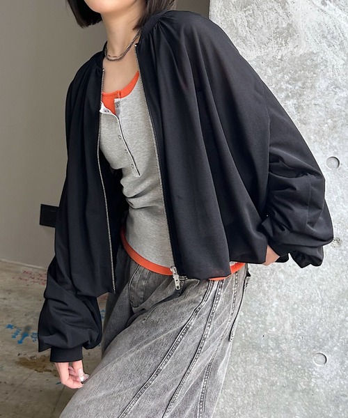 \ボトムス選ばず合わせやすい万能シアーブルゾン/ 程よい透け感のあるシアーカット素材に、裏側からチュールを重ねたバルーンシルエットのブルゾン。 ボリューム感がありつつ、抜け感のある素材で軽やかな印象に。 コーデに立体感を作り、羽織るだけで今っぽいバランスに仕上がります。 パンツにもスカートにも合わせやすく、季節の変わり目に使いやすい万能ライトアウターです。 〈注意事項〉 ・サンプルにて撮影をしておりますので、実際の商品とは素材や仕様・加工・サイズ等が若干異なる場合がございます。 ・モニター・環境等により実際の商品と色味が多少異なって表示される場合がございます。予めご了承をお願いいたします。 ・撮影環境により、光の当たり具合で色味が違って見える場合があります。あらかじめご了承下さい。 ▼気になるアイテムは《お気に入り登録》がおすすめです! 完売カラーの再入荷情報、セール情報、ラスト1点の通知を受け取ることができます! ▼《ブランドのお気に入り登録》で新商品や再入荷などのお得な情報をいち早くお知らせします。