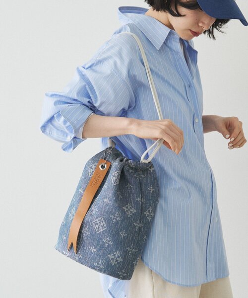 デニムのような風合いを楽しめる、ブランドオリジナルのデニムジャガードを使用した3WAY巾着バッグ。 軽やかな素材感と程よい存在感で、デイリーからお出かけまで幅広いシーンに寄り添います。 【デザイン】 デニム調ジャガードの程よくカジュアルな表情を、巾着フォルムでやわらかくまとめたデザイン。 ラフさのある装いにも、きれいめなスタイルにも自然に馴染み、ホワイト系レザーやシルバー金具が全体をすっきりと引き締めます。 巾着ならではの立体感のあるフォルムがスタイリングのアクセントになり、持ち方を変えることで印象の違いも楽しめます。 【ポイント】 ・巾着紐の留め方と付属ショルダーベルトの組み合わせで、3WAYの持ち方が可能 ・500mlペットボトルを縦向きに収納できる、見た目以上の収納力 ・シリーズオリジナルのレザータグ付き(ボールチェーンで取り外し可能) ・幅広のショルダーベルトで、肩掛け時も安定感のある使い心地 【仕様】 ・内装ポケット:ファスナーポケット×1、オープンポケット×2 ・開口部:マグネット ・使用金具カラー:シルバー 【素材】 経年変化を織りで表現し、デニムらしい風合いを感じられるジャガード素材を使用。 コットンのような見た目ながら、ポリエステル素材ならではの軽さや色落ちのしにくさを備え、弱撥水加工により雨や汚れにも強いのが特長です。 デザイン性と扱いやすさを両立した、ブランドオリジナルの素材です。 【カラー展開】 ・インディゴブルー(Indigo)…デニム調ジャガードの風合いが映えるカラー。ホワイト系レザーとの組み合わせで、軽やかさとクリーンな印象を添えます。 【注意事項】 ・弱撥水加工は経年によって効果は薄れてまいります。 ・本革を使用した製品のためシワ感のある部分や、キズがある部分と、生活によって生まれたその個体ならではの個性がございます。 ・革個性や革の表情はお選びいただく事はできません。予め天然素材であることをご了承の上お買い求め頂くようお願いいたします。 ・また水濡れや摩擦により色落ちや洋服への色移りが発生する可能性がございます。 Made in Japan #CE-1688 #RUSSET BURBANK
