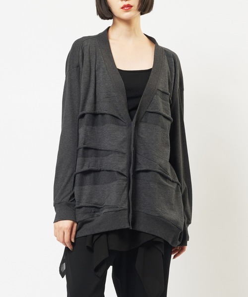 2026 SPRING&SUMMER COLLECTION■design・立体感のある生地で仕上げたカーディガン。・深めのVネックとゆとりある身幅で、リラックス感がありながらもシャープな印象を両立。・袖はシンプルなストレートラインで、全体のデザインを引き締めています。・生地に特徴があるため、他にはないgommeならではのアイテム。・冷房の効いた室内が多いため、カーディガンを一枚持っておくと重宝します。※裁断個所によって生地の柄が異なります。■fabric・生地を重ねて縫い留め、斜めに切り込みを入れたテキスタイル。・立体的になり、個性的な表情があります。■coordinate・ワイドパンツや分量感のあるボトムと合わせることで、デザイン性を活かしたスタイリングに。・インナー次第でレイヤードも楽しめ、ロングシーズン活躍するアイテムです。‥‥‥‥‥‥‥‥‥‥‥‥‥‥‥‥厚さ:普通透け感:なし伸縮性:あり光沢感:なしポケット:なし裏地:なし※詳しいお手入れ方法は商品タグをご参照ください。‥‥‥‥‥‥‥‥‥‥‥‥‥‥‥‥《お知らせ》・商品画像はご覧のモニター環境により、実物の色味と多少異なる場合がございます。予めご了承ください。・「商品のお気に入り登録」で再入荷・値下げ・在庫1点などの通知を受け取ることができます。・「ブランドのお気に入り登録」で新商品や再入荷など、お得な情報を受け取ることができます。※他のキャンペーンにより、期間中に価格が変動する場合があります。※セールは予告なく終了させて頂く場合もあります。