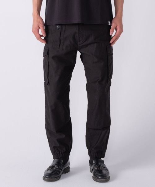 80年代にイギリス軍のために作製されたカーゴパンツをアップデート。モールスキン組織に織り上げたオーセンティックなミリタリー感を感じる素材を採用。両脇に配置されたフラップ付きポケットの他に、フラップ付きの腰ポケット、右前身頃に配置されたマチ付きポケットが特徴。堅牢性を高めるため前膝、ヒップ周りを二重仕様にしている。※商品と袋がくっつかないように製品袋内に粉末が微量に入っておりますが、商品の品質を正常に保つために使用しております。特に黒い製品にはその粉末が折り目等に目立って汚れのように見えてしまうことがございますが、製品上問題はございませんのであらかじめご了承をお願い致します。気になるようでしたら、濡れ布巾等で拭き取っていただければ簡単に落ちるものとなっております。