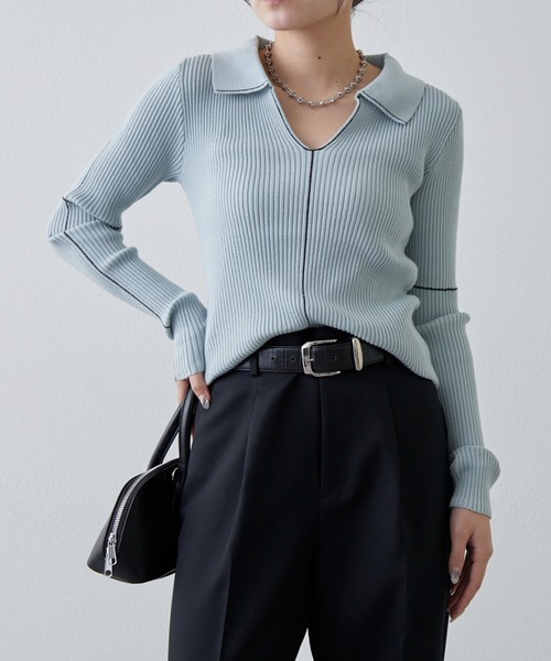 《 Lui's FEMME(ルイス ファム)オリジナル26SSコレクション 》 1枚でスタイルアップが叶うポロリブニットトップス 【ポイント】 ・程よい伸縮性のあるリブ素材で作られたポロニット。 ・華奢な襟とフロントスリットがデコルテを綺麗に見せてくれます。 ・体のラインをスリムに見せる、袖部分とフロント部分の配色ラインがポイントです。 【スタイリング】 ・スタイリッシュ且つデザイン性のあるトップスなので、シンプルボトムとのコーデが相性◎ ・オールインワンやジャケットなどのインナーとしてもオススメです。 ・トレンチコートやジャケットなどライトアウターを合わせるとキレイ目コーデにも◎ ・厚すぎない生地なのでボトムにタックインしてベルトを付けたまとまりのあるシンプルなスタイルもサマになります◎ ********************** 透け感:なし 裏地:なし 伸縮性:あり 光沢感:なし 生地の厚さ:普通 ********************** 【ブランド】 Lui's FEMME(ルイス ファム) 凛とした芯のある女性。 自立した、女性のワードローブをイメージ。洗練されたかっこよさの中に、女性らしさ・かわいさ・セクシーさを持つ。自分自身のスタイル(自分らしさ・個性・生き方・感覚...)を表現できるひとつの手段としての服。肩肘張らない、心地よいリラックス感のあるスタイルを上質な素材、優雅なシルエットで提案。 【注意事項】 ※画像の商品はサンプルです。実際の商品と色味、仕様、加工、サイズ、素材等が若干異なる場合がございます。 ※工場の生産の都合上、納期が変更になる場合がございます。発送日の前後については予めご了承ください。 ※入荷状況により、お客様への発送が店頭販売より遅れる場合もございます。 ※商品を使用前に、タグ等に記載されている「取り扱い上の注意書き」、「洗濯表示」を必ずご確認ください。 ※商品画像は、光の当たり具合やパソコンなどの閲覧環境により、実際の色味と異なって見える場合がございます。予めご了承ください。 ▼商品のお気に入り登録 完売カラーの再入荷通知やセール情報を受け取ることができます。 気になるアイテムは「お気に入り」登録がおすすめです! ♡マークをクリックし、お好きなカラーを選んでお気に入り登録をすると 残り1点のお知らせ、再入荷のお知らせ、SALE情報などを受け取ることができます。
