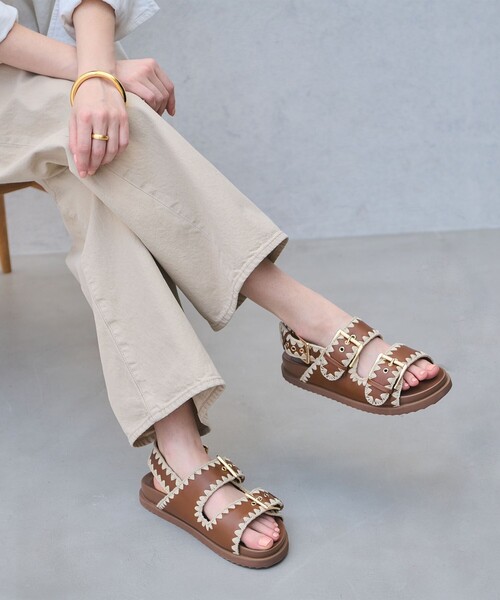飾りステッチがアクセントになった高級感あふれる2ラインサンダル■デザイン天然素材見えする糸を使用した飾りステッチが、モードな雰囲気に軽やかさをプラス。アッパー裏、飾りステッチは足当たりの良さにこだわり、快適な履き心地を実現しました。尾錠付きのベルトでフィット感の調整も可能です。■素材アッパー:天然皮革飾りステッチ部分:ポリエステルソール:合成底■コーディネートモードな印象を持ちながら、飾りステッチが春夏の軽やかな素材とも好相性。Iラインのワンピースやカジュアルなチノパンツと合わせて、洗練されたスタイルを楽しめます。【注意事項】※商品に「取り扱い上の注意書き」、「洗濯表示」がございます場合は、使用前に必ずご確認ください。※商品画像は、光の当たり具合やパソコンなどの閲覧環境により、実際の色味と異なって見える場合がございます。あらかじめご了承ください。※商品の色味の目安は、商品単体の画像をご参照ください。※シューズの重量は、シューズ本体のみ両足の重量となります。箱や付属品は計測に含まれません。※商品に不良が無い場合、包装紙および箱の破損がございましても発送いたします。あらかじめご了承ください。※画像の商品はサンプルです。実際の商品と色味、仕様、加工、サイズ、素材等が若干異なる場合がございます。※工場の生産の都合上、納期が変更になる場合がございます。発送日の前後については予めご了承ください。※入荷状況により、お客様への発送が店頭販売より遅れる場合もございます。店舗へお問い合わせの際は、全国のUNITED ARROWS各店舗まで下記の品名/品番をお申し付けください。品名:UA NAT 2LINE SDL 品番:17316000035