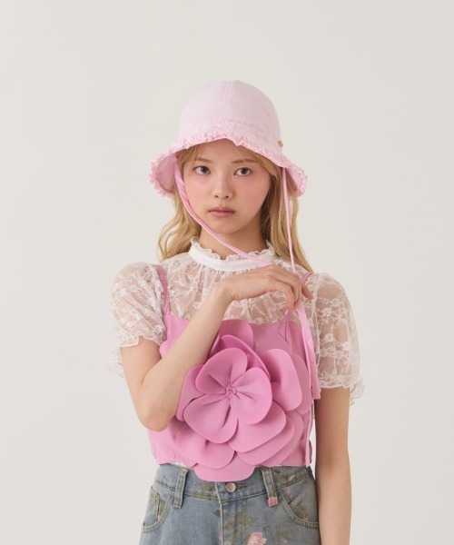 フリルが彩る。ボンネット風にも楽しめる洗えるハット定番のチューリップハットに、トレンドの甘さを加えた新作。つば先に施されたフリルが、顔周りに愛らしいアクセントを添えます。本体にはシャツのような爽やかな生地を使用し、甘さと軽やかさが調和した質感に仕上げました。後ろに入ったスリットにより、首や肩への干渉を軽減。小ぶりで馴染みの良いシルエットです。あご紐を結ぶとボンネットのような雰囲気が楽しめ、スタイリングに合わせて表情を変えられます。 シワになりにくいポリエステル素材で、ご自宅での洗濯機洗いが可能。デザイン性と扱いやすさを兼ね備えたアイテムです。UV, サイズ調整, 洗濯機洗い可頭回り:57.5cm 高さ:17.5cm 紐長さ:53cm【kaorinomori / カオリノモリ】「好き」を大切にすること / それがわたしの〝色〟へと変わる / 遊び心はとっておきのカオリづけ / kaorinomoriで見つける新しい色 / 新しいカタチ【お買い物のススメ】●商品のお気に入り登録完売商品の再入荷通知や、残り1点の通知、セールの通知を受け取ることができます。●ブランドのお気に入り登録新商品や再入荷など、ブランド情報を受け取ることができます。