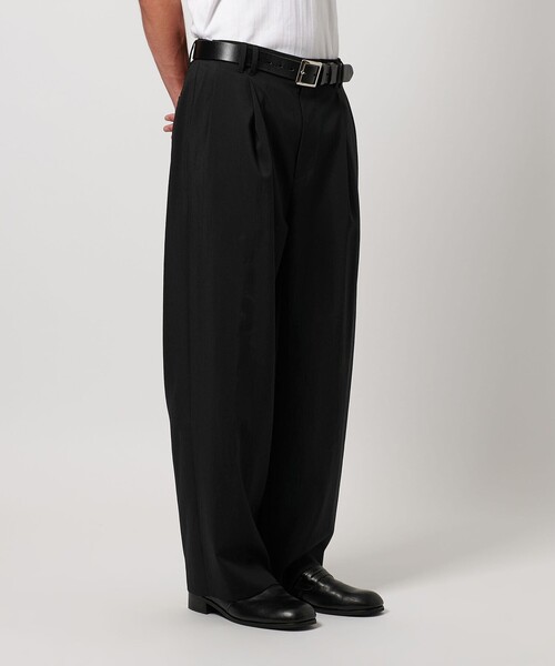 ■春シーズンに活躍間違いなしのカジュアルセットアップシリーズ■ウールライクなキレイ目の素材感ながらも麻のような肌離れの良さが特徴のワイドパンツ。程よくリラックスした印象と品の良さを兼ね備えた定番アイテムです。<monkey time>で人気の高いシルエットで、きれい目かつモードな印象で着用頂けます。カジュアルからきれい目まで着こなしやすい汎用性と、秋まで活躍する着用シーズンの長さも魅力です。■同素材のトップスもご用意しておりセットアップでの着用も可能です。・ダブルジャケット(対象品番:83221000001)・ラペルレスジャケット(対象品番:83221000000)・コーチジャケット(対象品番:83251000006)・プルオーバーシャツ(対象品番:83111000003)============================裏地:なし透け感:清涼感のある組織感伸縮:なし光沢感:なしケア方法:手洗い可============================<RENU>RENUは従来のポリエステルと同等の品質である上、染色がしやすいため、出したいと思った色をそのまま表現できるのも利点のひとつです。また、サステナビリティが当たり前となったいまの時代に即して、“繊維から繊維”へのリサイクルを行うことで循環型経済の実現を目指します。【注意事項】※商品に「取り扱い上の注意書き」、「洗濯表示」がございます場合は、使用前に必ずご確認ください。※商品画像は、光の当たり具合やパソコンなどの閲覧環境により、実際の色味と異なって見える場合がございます。あらかじめご了承ください。※商品の色味の目安は、商品単体の画像をご参照ください。※画像の商品はサンプルです。実際の商品と色味、仕様、加工、サイズ、素材等が若干異なる場合がございます。※工場の生産の都合上、納期が変更になる場合がございます。発送日の前後についてはあらかじめご了承ください。※入荷状況により、お客様への発送が店頭販売より遅れる場合もございます。店舗へお問い合わせの際は、全国のBEAUTY&YOUTH各店舗まで下記の品名/品番をお申し付けください。品名:MT RENU TRO 2P WD PT 品番:83141000011