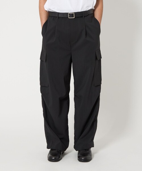■春シーズンに活躍間違いなしのカジュアルセットアップシリーズ■ウールライクなキレイ目の素材感ながらも麻のような肌離れの良さが特徴のカーゴパンツ。ウエストはゴムシャーリング仕様で内側に紐を通しており、サイズ感の調節もスムーズです。ベルトループも付いているため合わせるトップスによってベルト着用もおすすめです。裾のドローコードを絞ることでシルエットの変化も楽しめます。カジュアルからきれい目まで着こなしやすい汎用性と、秋まで活躍する着用シーズンの長さも魅力です。■同素材のトップスもご用意しておりセットアップでの着用も可能です。・ダブルジャケット(対象品番:83221000001)・ラペルレスジャケット(対象品番:83221000000)・コーチジャケット(対象品番:83251000006)・プルオーバーシャツ(対象品番:83111000003)============================裏地:なし透け感:清涼感のある組織感伸縮:なし光沢感:なしケア方法:手洗い可============================<RENU>RENUは従来のポリエステルと同等の品質である上、染色がしやすいため、出したいと思った色をそのまま表現できるのも利点のひとつです。また、サステナビリティが当たり前となったいまの時代に即して、“繊維から繊維”へのリサイクルを行うことで循環型経済の実現を目指します。【注意事項】※商品に「取り扱い上の注意書き」、「洗濯表示」がございます場合は、使用前に必ずご確認ください。※商品画像は、光の当たり具合やパソコンなどの閲覧環境により、実際の色味と異なって見える場合がございます。あらかじめご了承ください。※商品の色味の目安は、商品単体の画像をご参照ください。※画像の商品はサンプルです。実際の商品と色味、仕様、加工、サイズ、素材等が若干異なる場合がございます。※工場の生産の都合上、納期が変更になる場合がございます。発送日の前後についてはあらかじめご了承ください。※入荷状況により、お客様への発送が店頭販売より遅れる場合もございます。店舗へお問い合わせの際は、全国のBEAUTY&YOUTH各店舗まで下記の品名/品番をお申し付けください。品名:MT RENU TRO CG ES/PT 品番:83141000010