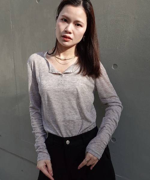 【CORNERS】 シアーリブヘンリーネックトップスは、上品なシア素材とリブデザインが見事に融合した一枚です。 柔らかな肌触りで、つけ心地も抜群。カジュアルなスタイルから、モードなコーディネートまで幅広く対応します。いつものスタイルを格上げするアイテムです。 その魅力はまず、肩のラインに沿ったヘンリーネック。まるで特別な気分を味わわせてくれるデザインです。 細やかなディテールにもこだわりが感じられ、周囲の視線を集めること間違いなし。おしゃれを通じて自信を持ちたい方に最適です。 さらに、シアー素材が軽やかさを演出。 layeringにも好適で、インナーとのコーディネートにも困りません。 春夏の軽やかな装いにはもちろん、秋冬にはニットやジャケットの下に合わせても、きっと素敵に決まります。 素肌がほんのり透ける透明感のあるトップス ▽生地感 透け感:あり 〇●〇〇〇 なし 生地の厚さ:厚い 〇〇〇●〇 薄い 裏地:なし 伸縮性:あり ◆商品のお気に入り登録 【お気に入りに登録】を是非ご活用ください。 再入荷の通知や、ラスト1点の通知、セールの通知がいち早く届きます。 ◆ブランドのお気に入り登録 新商品や再入荷など、いち早くブランドのお得情報が届きます。 ◆ATTENTION◆ ※取り扱いについては、商品についている品質表示でご確認ください。 ※出来る限り忠実に再現するよう務めておりますが、 ディスプレイ画面などの環境上、店頭・屋外での撮影画像は、 光の当たり具合で色味が違って見える場合が あります。ご了承下さい。 ※こちらの商品は水や雨に濡れたり、汗による湿気、乾燥状態での摩擦により、薄い色の衣服などに 色移りする可能性がございます。 予めご了承いただき、ご使用の際にはご注意くださいますようお願い致します。 ※平置きでの実寸のため若干の誤差が生じる場合がございます。 ※生産時期により若干の色ブレやサイズの変動が生じる場合がございます。 ※また製品加工上、お手元に届く際に匂いが生じる場合がありますが、 ご使用を続けていく事により匂いは軽減されます。 ※輸送時による、多少の汚れ・シワがある場合がございます。 ■海外製品の為、まれにキズや色糸混入、縫製の甘い・雑な商品、サイズにバラつきが見られる場合がございます。予めご理解の上、ご購入下さい。